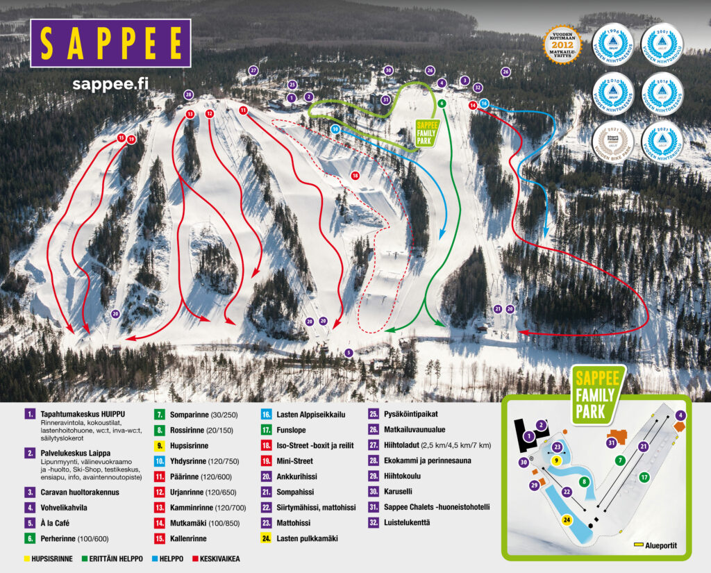 Watch these helmet camera videos to familiarize yourself with Sappee’s slopes beforehand. Click on the name of the slope to open the video.