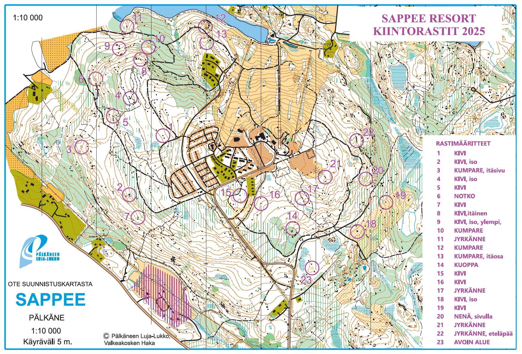 Sappeeta ympäröivissä metsissä on 23 kiintorastia. Lataa kartta alla olevasta linkistä. Sappee kiintorastit 2025