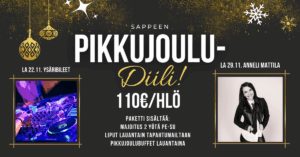 Majoitustarjoukset Kolme yötä kahden hinnalla Tarjoamme edullisimman yön! Syksyn ja talven majoitukset -20%! Katso tarjouskoodi tästä! Sappeen Pikkujouludiili lue lisää