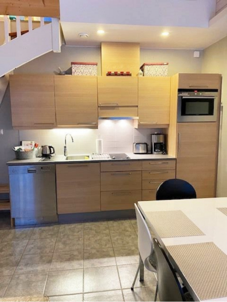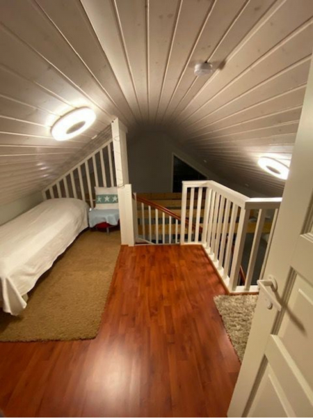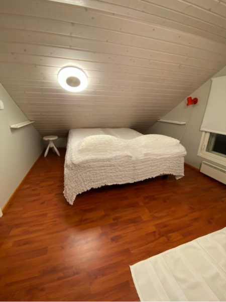 Tilava erillismökki (keskimmäinen kolmesta) Perherinteen yläaseman välittömässä läheisyydessä. Viihtyisässä alakerrassa 1 makuuhuone (parivuode + kaappitilaa), makuusoppi (1 sänky + kaappitilaa), Yläkerrassa (osittain matalampaa tilaa) makuuhuone (3 vuodetta), aulatila (jossa tv +leluja/pelejä). Yläkertaan johtavat kunnon portaat. Olohuoneessa tilava ruokailuryhmä, avokeittiö kodinkonein, astiasto kuudelle. Sähkösauna, kylpyhuone/wc ja lisäksi erillinen wc.