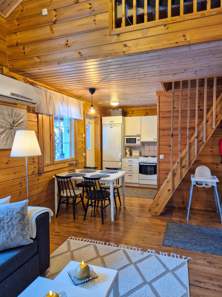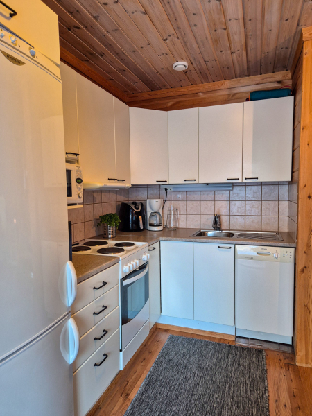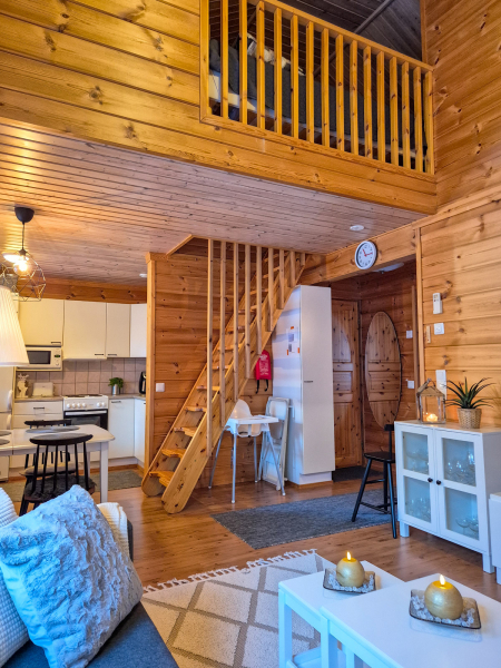 Viihtyisä hirsisen rivitalon päätyhuoneisto Sappeen huipulla. Tupakeittiö, 1 makuuhuone (parisänky), parvella 2 sänkyä ja olohuoneessa vuodesohva. Keittiö varusteltu 6:lle peruskodinkonein. 6 hengen jatkettava ruokapöytä. Lasten syöttötuoli ja juniorituoli. Terassilla pieni pöytäryhmä ja kaasugrilli (kaasupullo varastossa), lukollinen ulkovarasto. Taloyhtiöllä on oma grillipaikka.