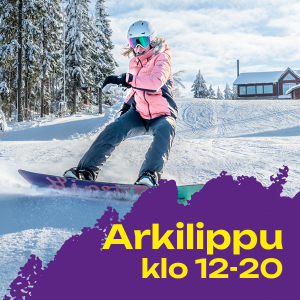 Arkilippu on voimassa 1 vuoden ostopäivästä. Seteli vaihdetaan 1 päivän arkihissilippuun Sappeen lipunmyynnissä. Hinta ei sisällä sirukorttia. Voit ostaa sirukortin lisäksi valitsemalla sen lisäpalvelutuotteista. Lippu ladataan sirukortille lipunmyynnissä. Setelin voi käyttää kaikkina normaaleina arkipäivinä aikuisen tai lapsen lippuun klo 12-20 välisenä aikana. Arkilippu ei ole voimassa loma-aikoina, tarkista loma-ajat