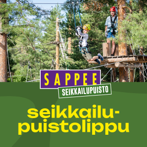Seikkailuaika 3h. Sisäänpääsy Sappeen seikkailupuistoon. Ei sis. Extreme- ratoja. Yli 130 cm seikkailijalle, painoraja 120kg. Seikkailijoilla tulee olla hansikkaat, voit ottaa omat tai ostaa ne lipunmyynnistä. Seikkailupuisto on avoinna kesäaikaan. Lippu on voimassa vuoden ostopäivästä.