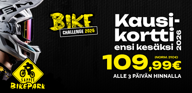 Tervetuloa Sappeen verkkokauppaan! Vuokramökit Sappee Chalets Caravan paikat Keikat Hissiliput Kymppitiistai-liput Välinevuokraamo Sähköavusteiset polkupyörät FrisbeeGolfPark Lahjakortit ja arvosetelit Kausikortit Snow Rent Card Kesäteatteri 2026: Sellaista elämä on Firmakortti Wernerikurssit Laskettelukurssit Etusivu > Verkkokauppa Verkkokaupan etusivu Bike Challenge 2026 - Vinkkaa kaverille! Kutsu kaverisi mukaan kampanjaan - VOIT VOITTAA 50 EURON LAHJAKORTIN!! Kaveriporukassa harrastaminen on hauskempaa, eikö vaan? Varmista, että ajat arvoisessasi seurassa. Vinkkaa siis kampanjasta tuttavillesi. Vinkkaamalla Sappee Bike Challenge 2026 -kausikorttikampanjasta kaverillesi takaat arvoisesi ajoseuran ja osallistut samalla 50 € lahjakortin arvontaan. Lahjakortin voit käyttää Sappee Bike Parkin vuokraamossa/shopissa. Lahjakortti on voimassa kesäkauden 2026. Osallistut arvontaan, kun vinkkaat kausikorttikampanjasta 12.04.2026 mennessä. Ota haaste vastaan! Vinkkaajan tiedot Etunimi* Sukunimi* Ilmoittajan sähköposti* Kaveri1* Kaveri2* Kaveri3* Rekisteriseloste.