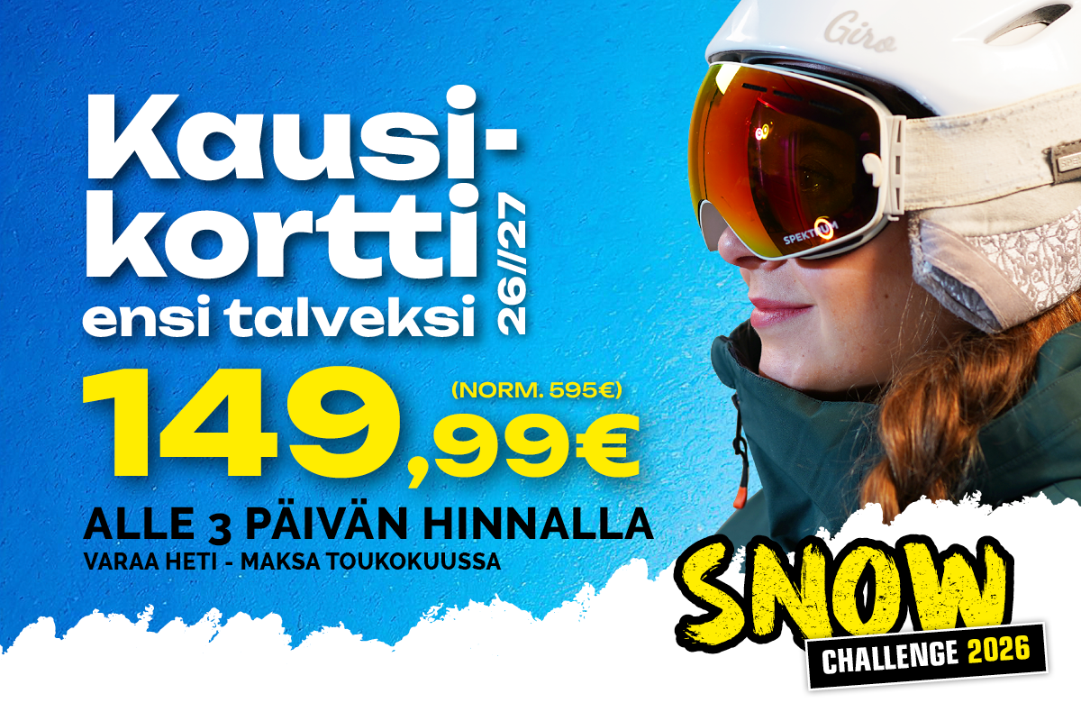 Tervetuloa Sappeen verkkokauppaan! Vuokramökit Sappee Chalets Caravan paikat Keikat Hissiliput Kymppitiistai-liput Välinevuokraamo Sähköavusteiset polkupyörät Gravity Camp 2026 FrisbeeGolfPark Lahjakortit ja arvosetelit Kausikortit Snow Rent Card Kesäteatteri 2026: Sellaista elämä on Firmakortti Wernerikurssit Laskettelukurssit Etusivu > Verkkokauppa Verkkokaupan etusivu Snow Challenge 2026 - Vinkkaa kaverille! Kutsu kaverisi mukaan kampanjaan - VOIT VOITTAA 50 EURON LAHJAKORTIN!! Kaveriporukassa harrastaminen on hauskempaa, eikö vaan? Varmista, että ajat arvoisessasi seurassa. Vinkkaa siis kampanjasta tuttavillesi. Vinkkaamalla Sappee Snow Challenge 2026 -kausikorttikampanjasta kaverillesi takaat arvoisesi laskuseuran ja osallistut samalla 50 € lahjakortin arvontaan. Lahjakortin voit käyttää Sappee vuokraamossa/shopissa. Lahjakortti on voimassa talvikauden 26/27. Osallistut arvontaan, kun vinkkaat kausikorttikampanjasta 12.04.2026 mennessä. Ota haaste vastaan! Vinkkaajan tiedot Etunimi* Sukunimi* Ilmoittajan sähköposti* Kaveri1* Kaveri2* Kaveri3* Rekisteriseloste.